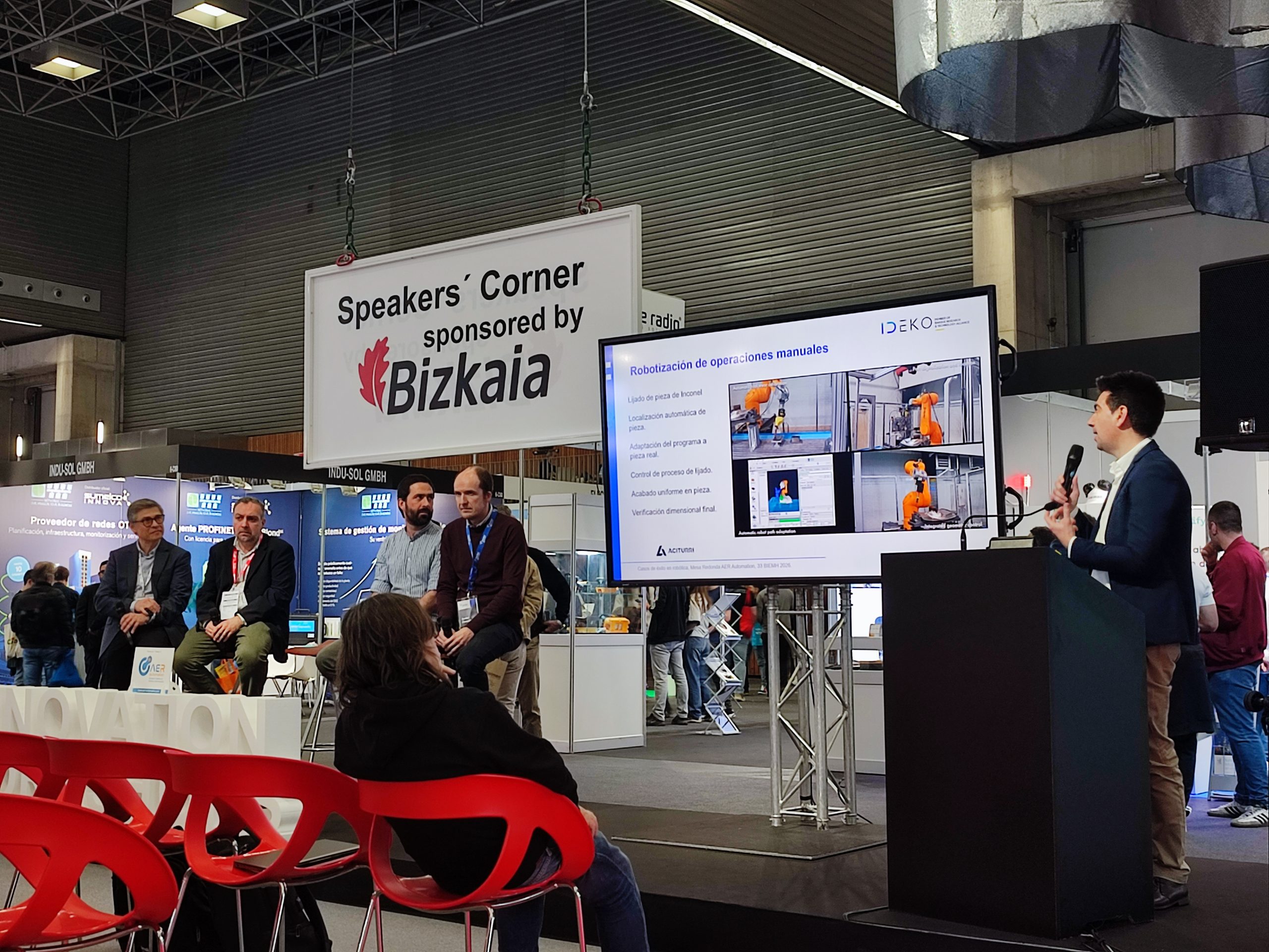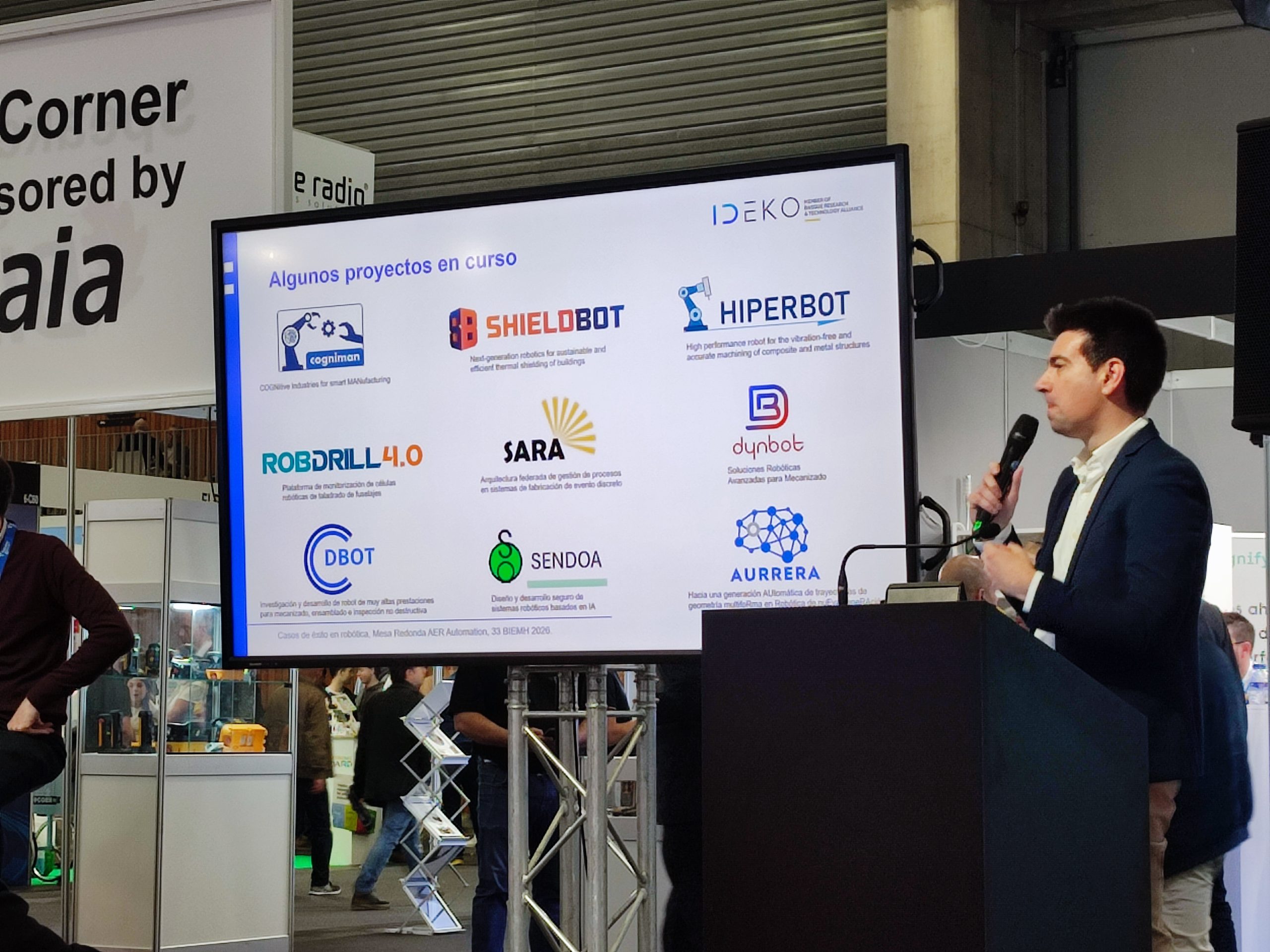 Our coordinator also took part in a roundtable discussion organised by AER Automation, the Spanish association for robotics and industrial automation, on Thursday 5 March at 11:05h in Hall 6 - B-50 Speakers’ Corner by Bizkaiko Foru Aldundia / Diputación Foral de Bizkaia (Provincial Council of Bizkaia), as part of the Innovation Workshops on Robotics, Automation and Digitisation. The session was titled “De la I+D aplicada al impacto industrial: robótica y automatización para una fabricación inteligente y sostenible” (“From Applied R&D to Industrial Impact: Robotics and Automation for Smart and Sustainable Manufacturing”).