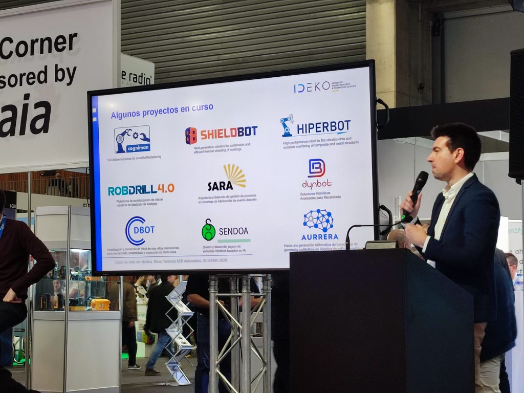Asier Barrios, Researcher at IDEKO, contributed as a speaker, sharing IDEKO’s experience and perspectives on the role of robotics in enabling smarter and more sustainable manufacturing. His intervention helped to increase the visibility of the ShieldBot project among members of the industrial and automation community who attended BIEMH 2026.